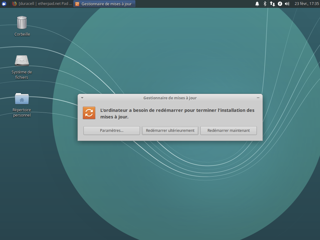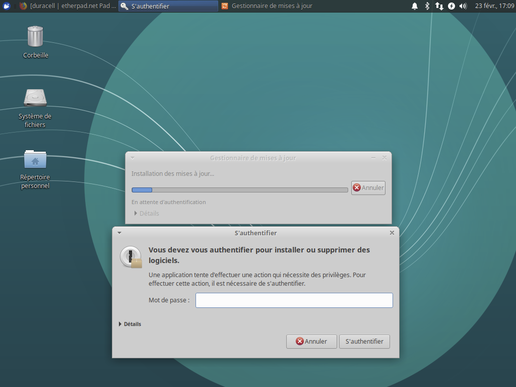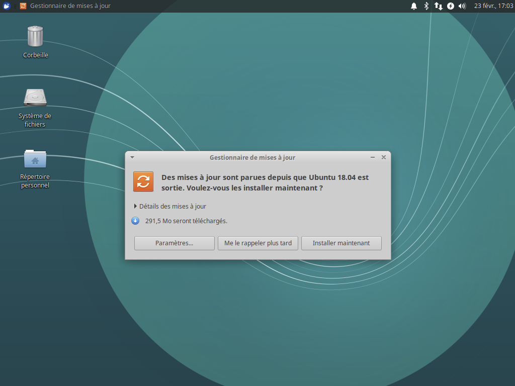 Au démarrage de Xubuntu avec le compte par défaut, on nous propose une mise à jour. Cliquer sur le bouton “Installer maintenant”